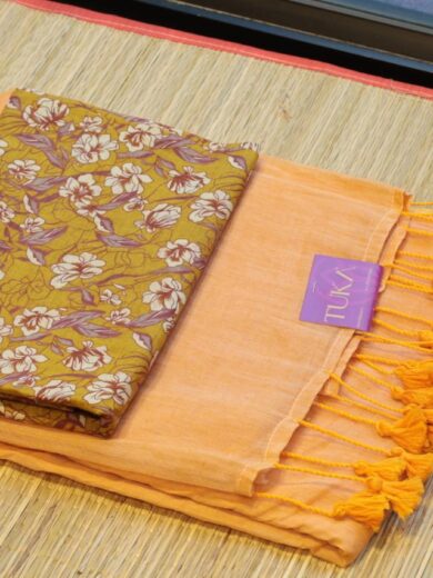 Elegant Mustard Floral Mul Cotton Handloom Saree – A Perfect Blend of Comfort & Tradition